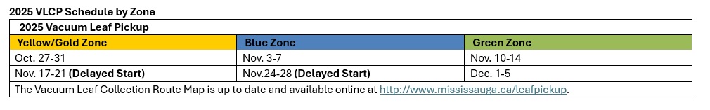 Rain or early snowfall can impact the collection schedule. To find out if your street is affected, you can call 311 (905-615-4311 outside City limits).