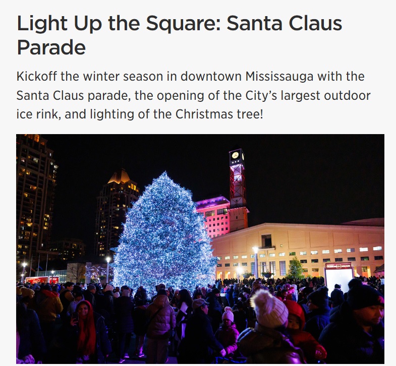 Kickoff the winter season in downtown Mississauga with the Santa Claus parade, the opening of the City’s largest outdoor ice rink, and lighting of the Christmas tree!